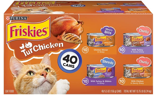Purina Friskies-Canned Wet Cat Food comes in forty, 5.5-ounce cans to keep your cat satisfied and healthy. Designed for all ages, this best cat food contains savory gravies that provide extra moisture, and softness for your cat to have an easy time when feeding on it.