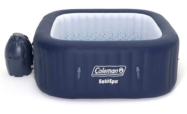 It fits up to four people at one time. And at the touch of a button, you can control almost everything within this hot tub. It includes a cover filter, heater, blower LED light, six filter cartridges, two head restraints, an inflation hose, heated ground cloth, a carry bag, a test strip, and a floating chlorine dispenser. All these features come in handy to help you achieve the best relaxation ever.