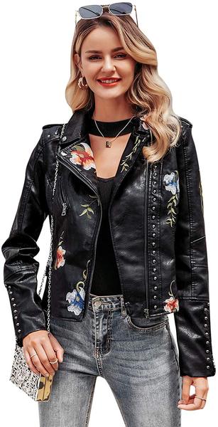 Best Style: BerryGo Women’s Floral Embroidered Faux Leather Jacket